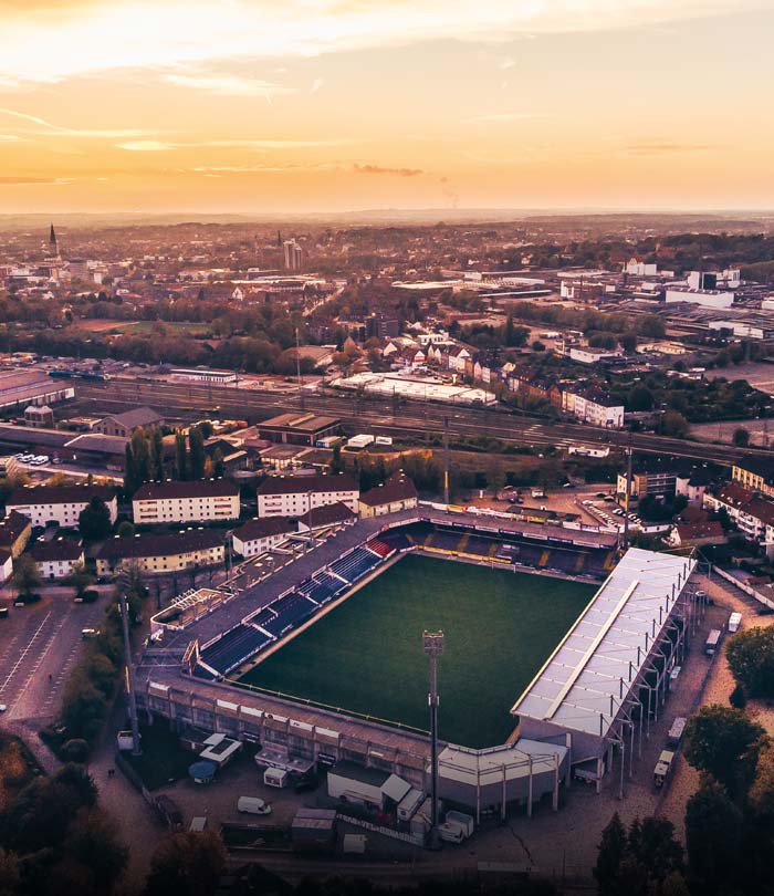 Seit mehr als 85 Jahren liegt das Stadion an der Bremer Brücke im Herzen des Osnabrücker Arbeiterstadtteils Schinkel. Zunächst umgeben von wenigen Schrebergärten und einzelnen Häusern, erscheint die einstige Rapid-Kampfbahn unweit der namensgebenden Eisenbahnbrücke heute wie das englischste aller deutschen Fußballstadien: Mitten im Wohngebiet gelegen weisen lediglich die Flutlichtmasten den Weg zu diesem einzigartigen Ort, der uns in seinen Bann gezogen hat. Und dieser Ort ist seit über 80 Jahren nicht nur die tatsächliche, sondern besonders auch die emotionale Heimat unseres VfL. Dieser Ort ist, WO DAS HERZ SCHLÄGT.