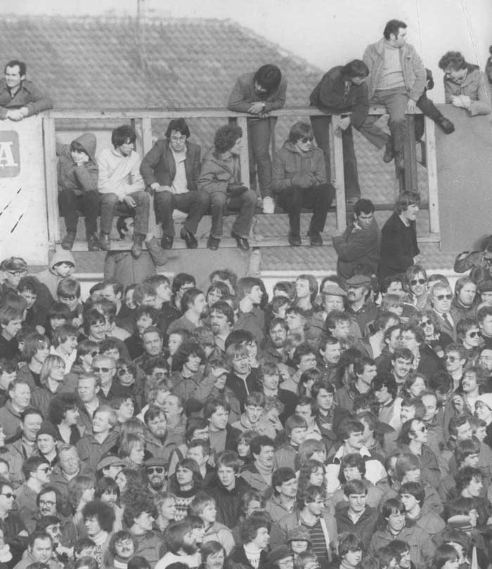 • Eine alte Bruchbude, dreckige Tribünenwände voll Graffiti, Verkaufsbuden aus alten Holzbrettern, Bier in Plastikbechern, kaputte Gitterzäune und überall roch es nach verkohlter Bratwurst. Geil!