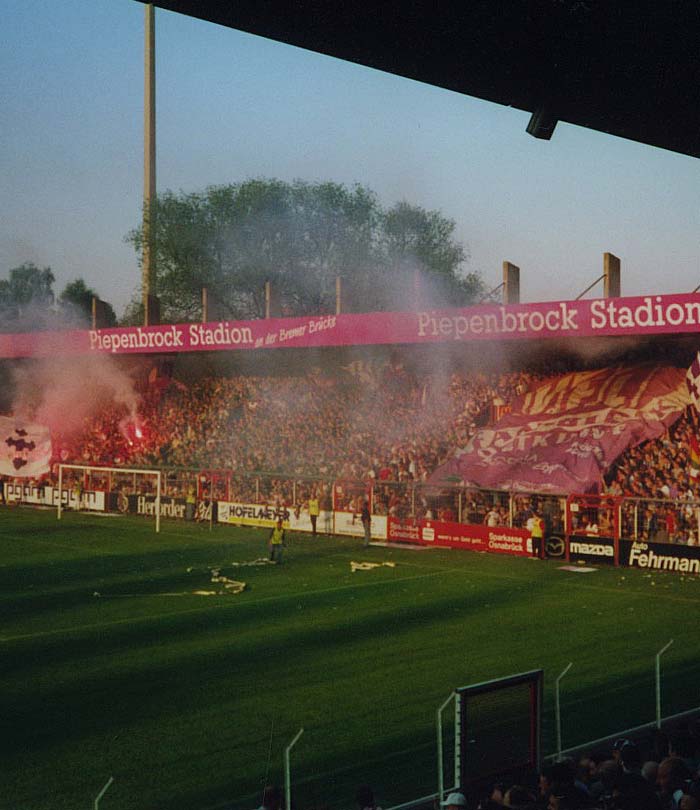 Als Radoslav Momirski diese Beschreibung der Stimmung an der Bremer Brücke abgab, gab es Ultras nur in Italien und das Flutlicht an der Bremer Brücke war noch nicht einmal geplant. Dennoch beschrieb er in der Meistersaison 1968/1969 damit etwas, das noch heute, genau 50 Jahre später in der Meistersaison 2019 unverändert ist: nämlich die Begeisterungsfähigkeit des Osnabrücker Publikums. Was wurden seit dieser Zeit nicht alles für Schlachten an der Bremer Brücken geschlagen? Insbesondere als krasser Außenseiter in Pokalspielen entwickelten lila-weiß gekleidete Spieler immer wieder schier übermenschliche Kräfte, wenn sie von den Rängen zum Sieg „getragen“ wurden.